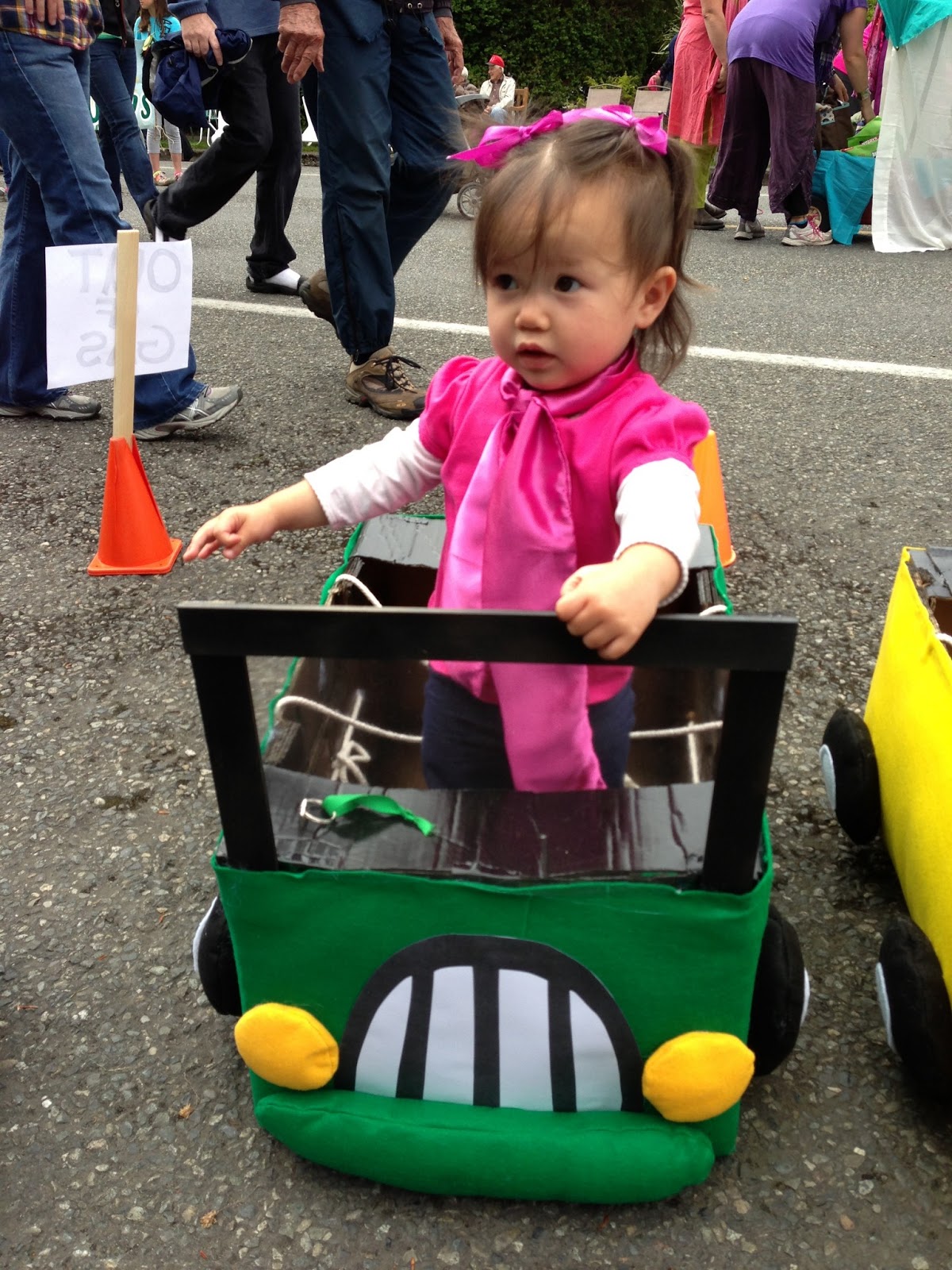 We waited with the boys' cars a little ways ahead of Grandma's class on the parade route. Jayden loved playing with all the cars~